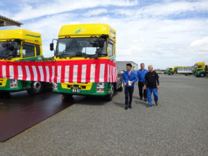 毎日猛暑に見舞われている福岡県糟屋郡宇美町ですが、本日も朝から太陽がサンサンと輝いてます。 そんな中、本日7月11日、トレーラー2台入庫しました。 今回もいすゞ自動車九州様始め、関係各社様には多大なるご支援頂きました。有難うございました。 前回の10t車からデザインを一新してます。感想をお聞かせください?